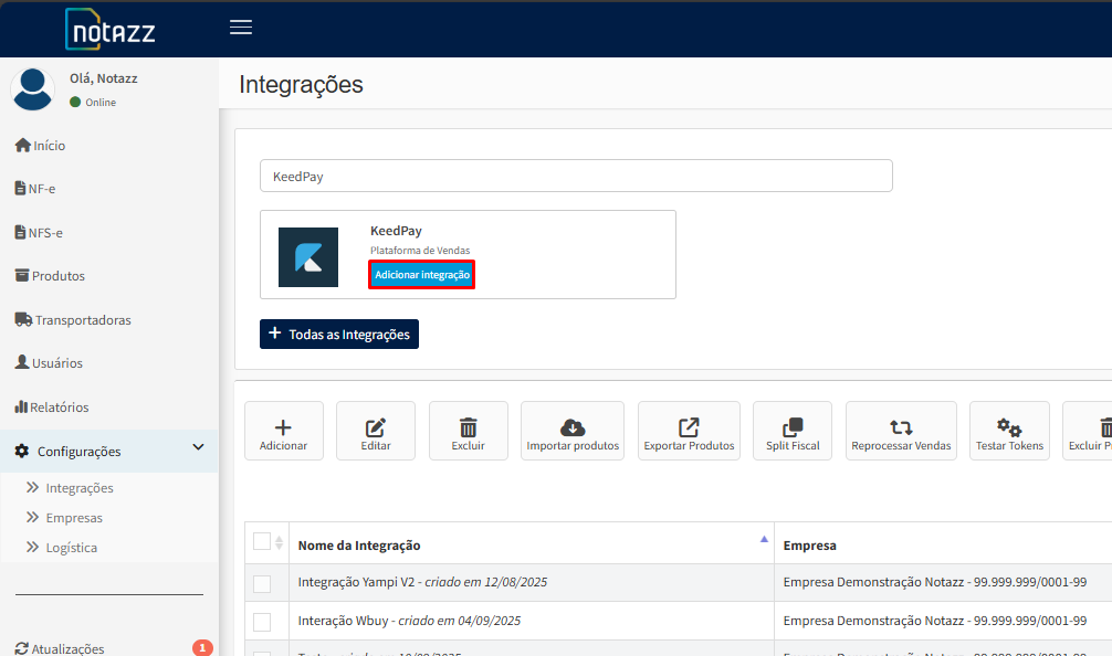 Confira os passos a seguir para integrar o Notazz a sua conta da Keed Pay ao Notazz.