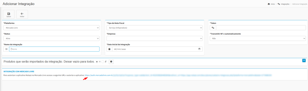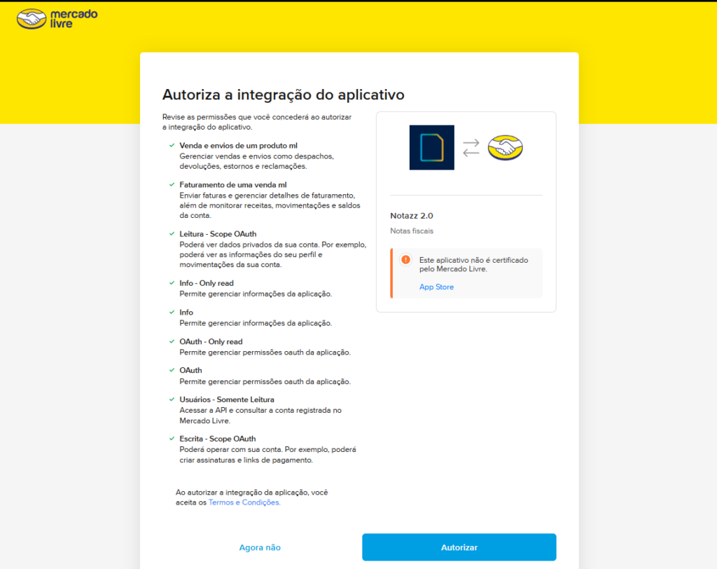 Antes de configurar sua emissão, vamos precisar pegar o Token da integração, e para isso você deve autorizar a integração Notazz + Mercado Livre.